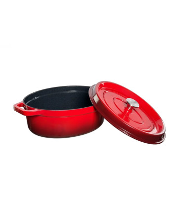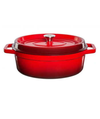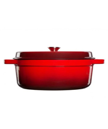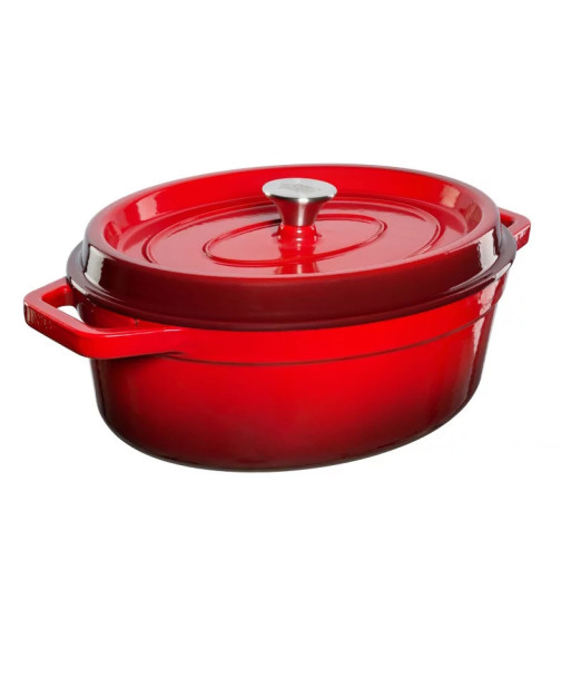 Stilingas, minimalistinio dizaino „Casserole“ tipo, raudonas, Grand feu puodas su dangčiu – ilgaamžiškumo ir patvarumo garantas. Puodo korpusas pagamintas iš ketaus, išorė padengta blizgiu emaliu, vidus padengtas emaliu. Emalio sluoksnis apsaugo vidinį paviršių nuo rūdžių ir kartu užtikrina, kad gaminamas maistas neprilips prie kraštų. Puodas turi plačias rankenas, todėl jį patogu paimti su pirštinėmis. Puodas įkaista lėtai, tačiau išlaiko šilumą stabilią iki 4 valandų. Atlaiko ir itin aukštą iki 300 laipsnių temperatūrą. Šiuose puoduose verdamos pačios skaniausios košės, sriubos, padažai, troškiniai. Puikiai tinka kepti duoną ar plokštainį.