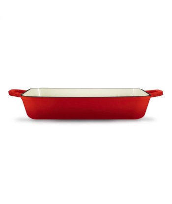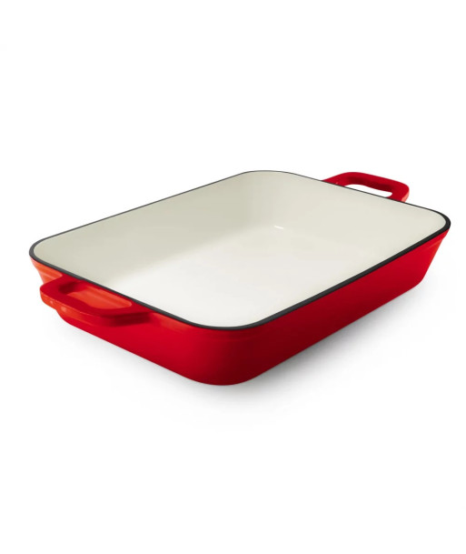 Grand Feu raudonas kepimo indas – paprastai ir kokybiškai kasdien! Šis stilingas, minimalistinio dizaino kepimo indas neabejotinai taps jūsų kasdieniu palydovu virtuvėje. Kepkite, troškinkite, marinuokite! Šis universalus, klasikinės stačiakampio formos, indas, savo didelio kepimo ploto dėka, puikiai tiks tiek saldiems tiek pikantiškiems patiekalams su traškia plutele. Indo korpusas pagamintas iš ketaus, išorė ir vidus padengti emaliu. Jo šonuose išlietos patogios, ergonomiškos rankenos todėl jį patogų paimti su pirštinėmis, o indo dydis puikiai tinka klasikinio dydžio orkaitėms. Gaminkite ir patiekite savo mėgiamą maistą šiame kepimo inde, kuris papuoš bet kurį šventinį stalą ir leis mėgautis kokybiškai pagamintu maistu. Savybės: