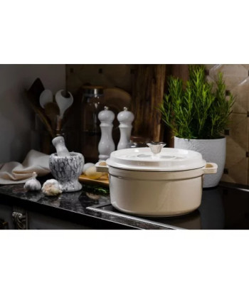 Stilingas, minimalistinio dizaino ,,Casserole“ tipo, baltas, puodas su dangčiu – ilgaamžiškumo ir patvarumo garantas.