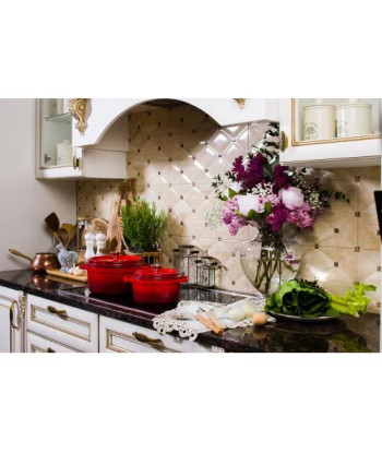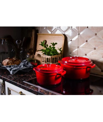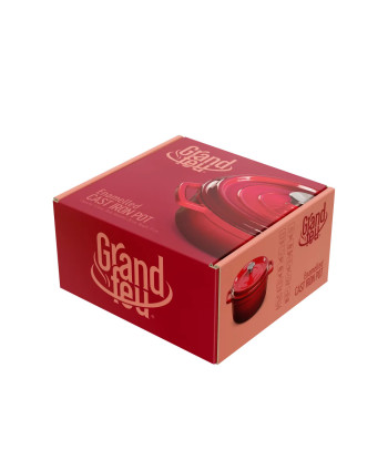 Stilingas, minimalistinio dizaino Grand Feu raudonas, 4,7l su dangčiu – ilgaamžiškumo ir patvarumo garantas. Puodo korpusas pagamintas iš ketaus, išorė padengta blizgiu emaliu, vidus padengtas matiniu emaliu. Matinis emalio sluoksnis apsaugo vidinį paviršių nuo rūdžių ir kartu užtikrina, kad gaminamas maistas neprilips prie kraštų. Puodas turi plačias rankenas, todėl jį patogų paimti su pirštinėmis. Puodas įkaista lėtai, tačiau išlaiko šilumą stabilią iki 4 valandų. Atlaiko ir itin aukštą temperatūrą iki 300 laipsnių. Šiuose puoduose verdamos pačios skaniausios košės, sriubos, padažai, troškiniai. Puikiai tinka kepti duoną ar plokštainį.