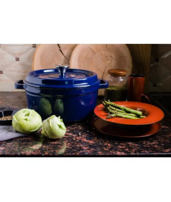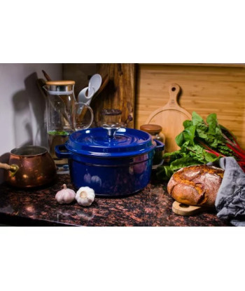 Stilingas, minimalistinio dizaino Grand Feu mėlynas, 4,7l su dangčiu – ilgaamžiškumo ir patvarumo garantas. Puodo korpusas pagamintas iš ketaus, išorė padengta blizgiu emaliu, vidus padengtas matiniu emaliu. Matinis emalio sluoksnis apsaugo vidinį paviršių nuo rūdžių ir kartu užtikrina, kad gaminamas maistas neprilips prie kraštų. Puodas turi plačias rankenas, todėl jį patogų paimti su pirštinėmis. Puodas įkaista lėtai, tačiau išlaiko šilumą stabilią iki 4 valandų. Atlaiko ir itin aukštą temperatūrą iki 300 laipsnių. Šiuose puoduose verdamos pačios skaniausios košės, sriubos, padažai, troškiniai. Puikiai tinka kepti duoną ar plokštainį.