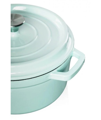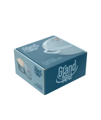 Stilingas, minimalistinio dizaino Grand Feu žydras, 4,7l su dangčiu – ilgaamžiškumo ir patvarumo garantas. Puodo korpusas pagamintas iš ketaus, išorė padengta blizgiu emaliu, vidus padengtas matiniu emaliu. Matinis emalio sluoksnis apsaugo vidinį paviršių nuo rūdžių ir kartu užtikrina, kad gaminamas maistas neprilips prie kraštų. Puodas turi plačias rankenas, todėl jį patogų paimti su pirštinėmis. Puodas įkaista lėtai, tačiau išlaiko šilumą stabilią iki 4 valandų. Atlaiko ir itin aukštą temperatūrą iki 300 laipsnių. Šiuose puoduose verdamos pačios skaniausios košės, sriubos, padažai, troškiniai. Puikiai tinka kepti duoną ar plokštainį.